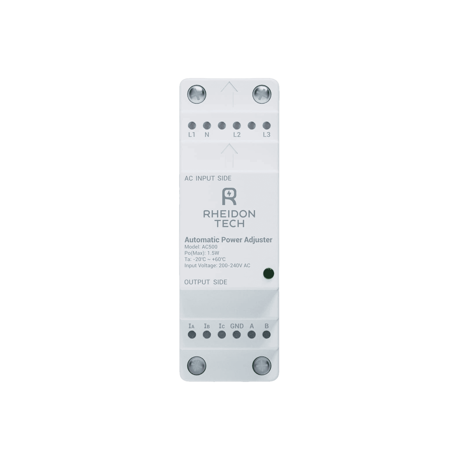 Az AC500 egy kompakt és intelligens vezérlőegység, amelyet a Rheidon Tech töltőállomásokhoz terveztek. Feladata, hogy a töltés teljesítményét a háztartás aktuális áramterhelhetőségéhez igazítsa, ezzel megelőzve a hálózat túlterhelését és biztosítva az otthoni villamos rendszer védelmét.